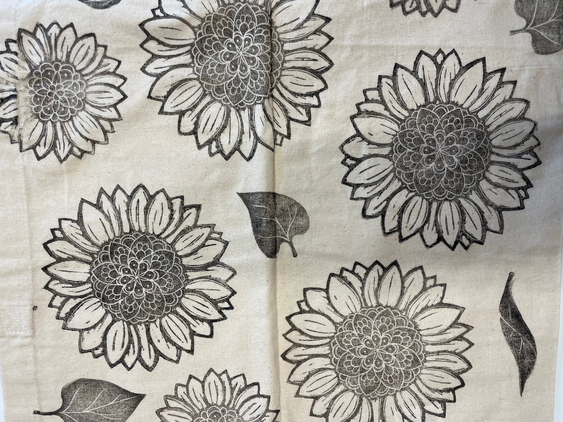 Lino Printed Sunflower Mandala Tote Bag - sample sale!
